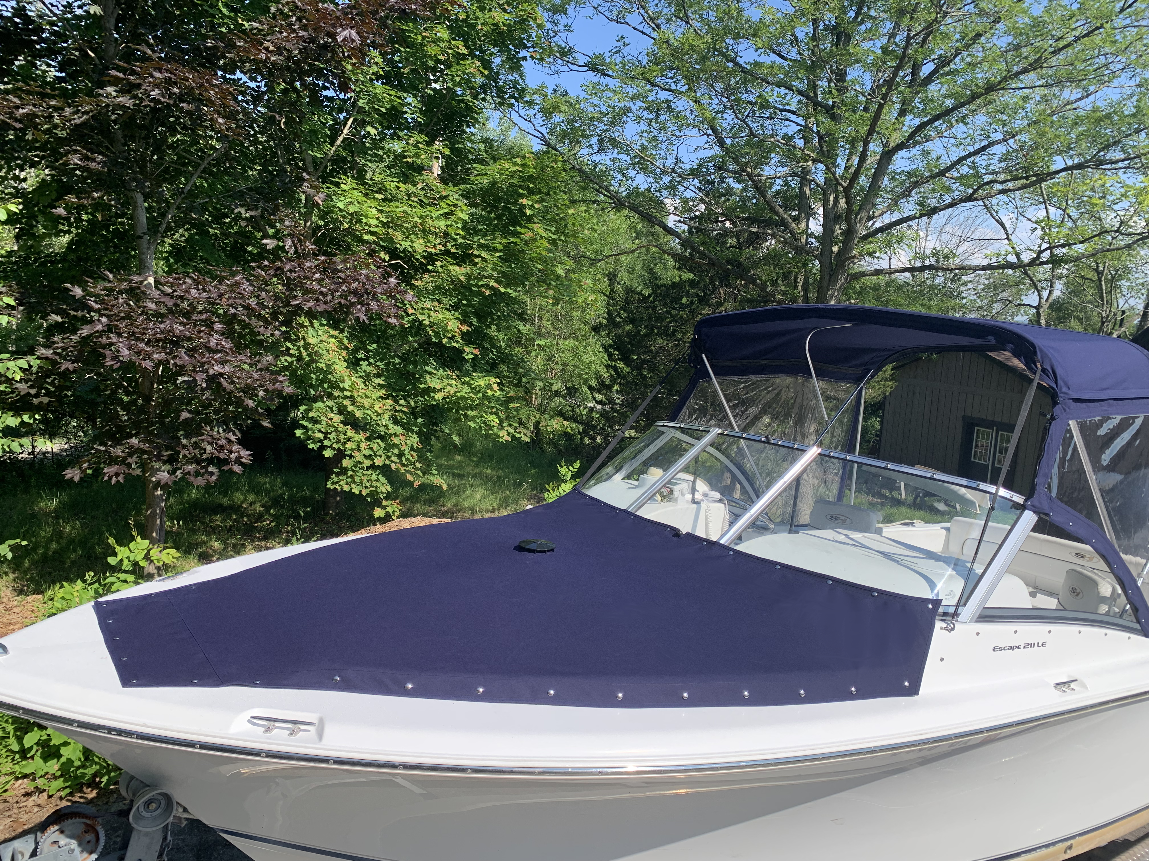 - Boat with dark blue bow cover, Ship Shape Sewing work sample