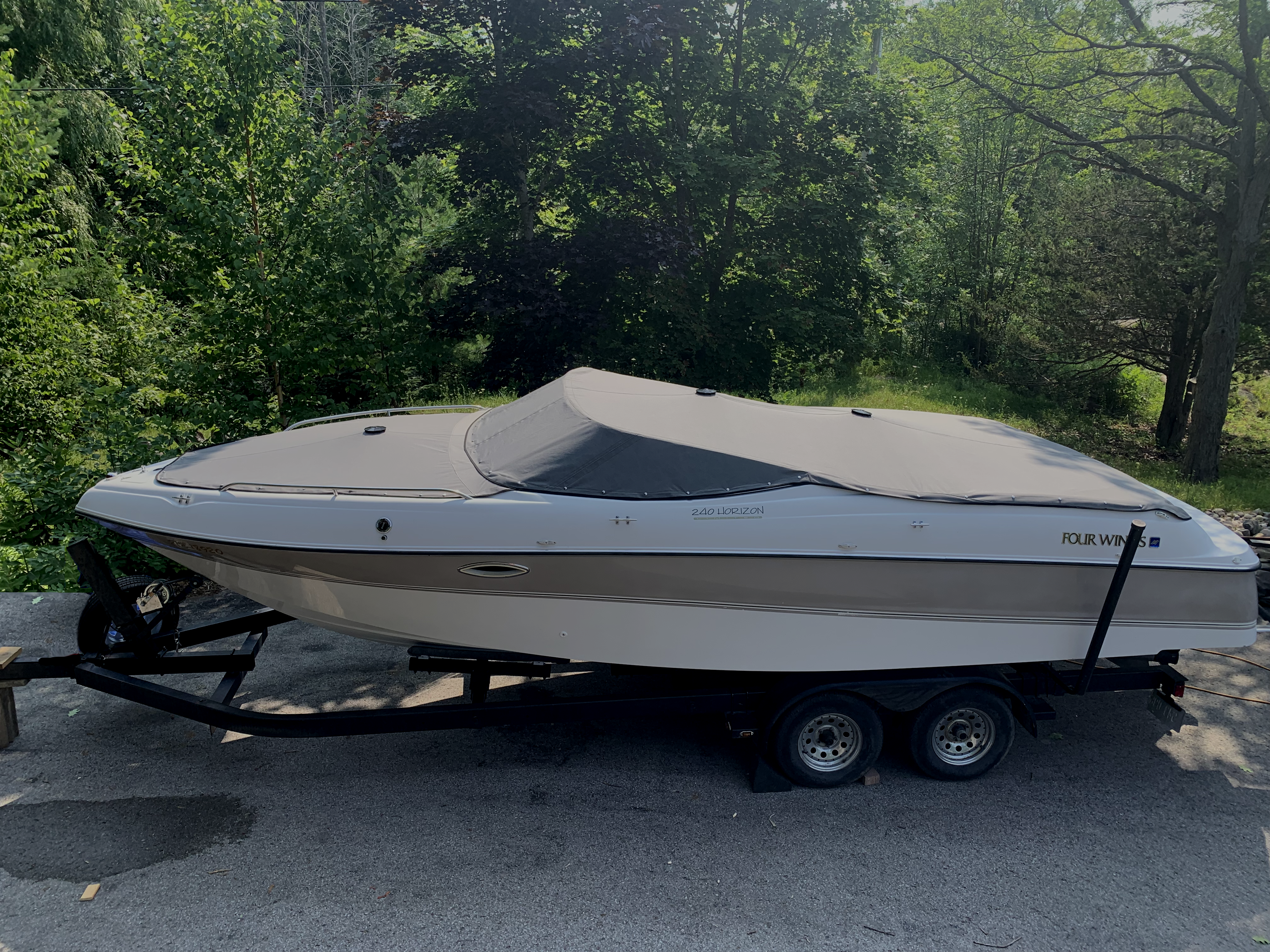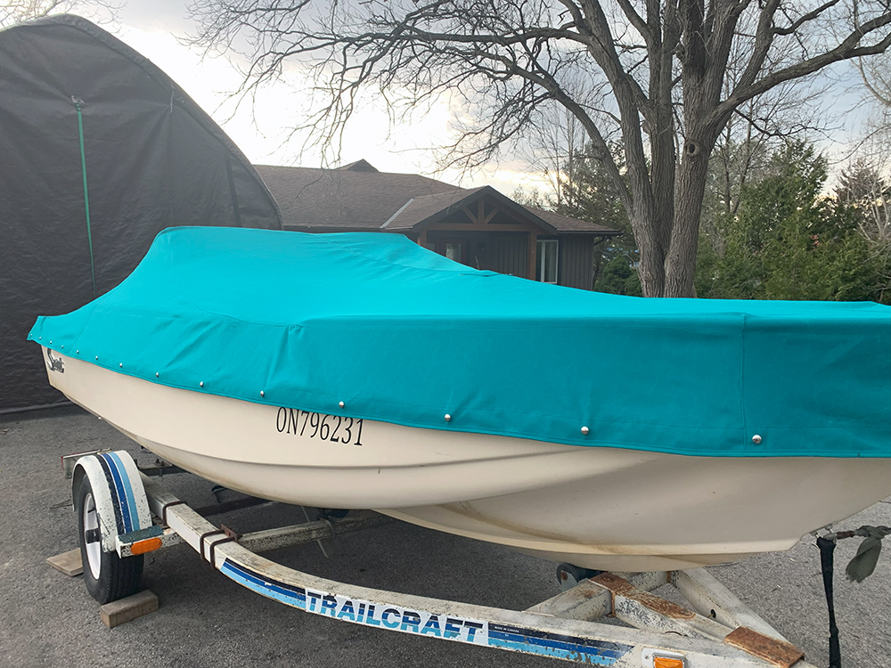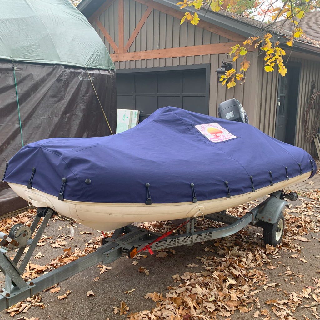 - Custom boat cover on trailer, a Ship Shape Sewing work sample